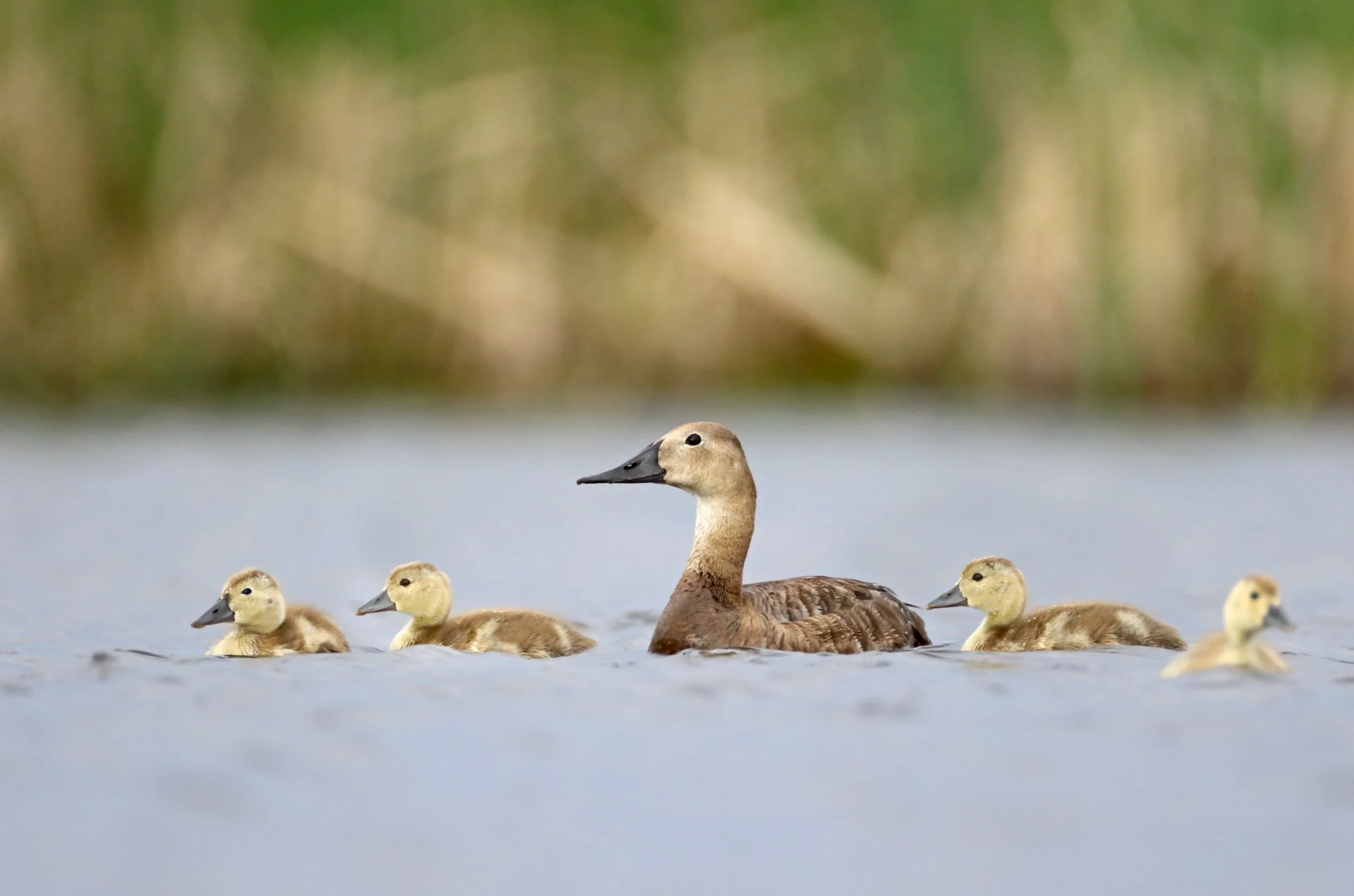 Canvasback duck with babies