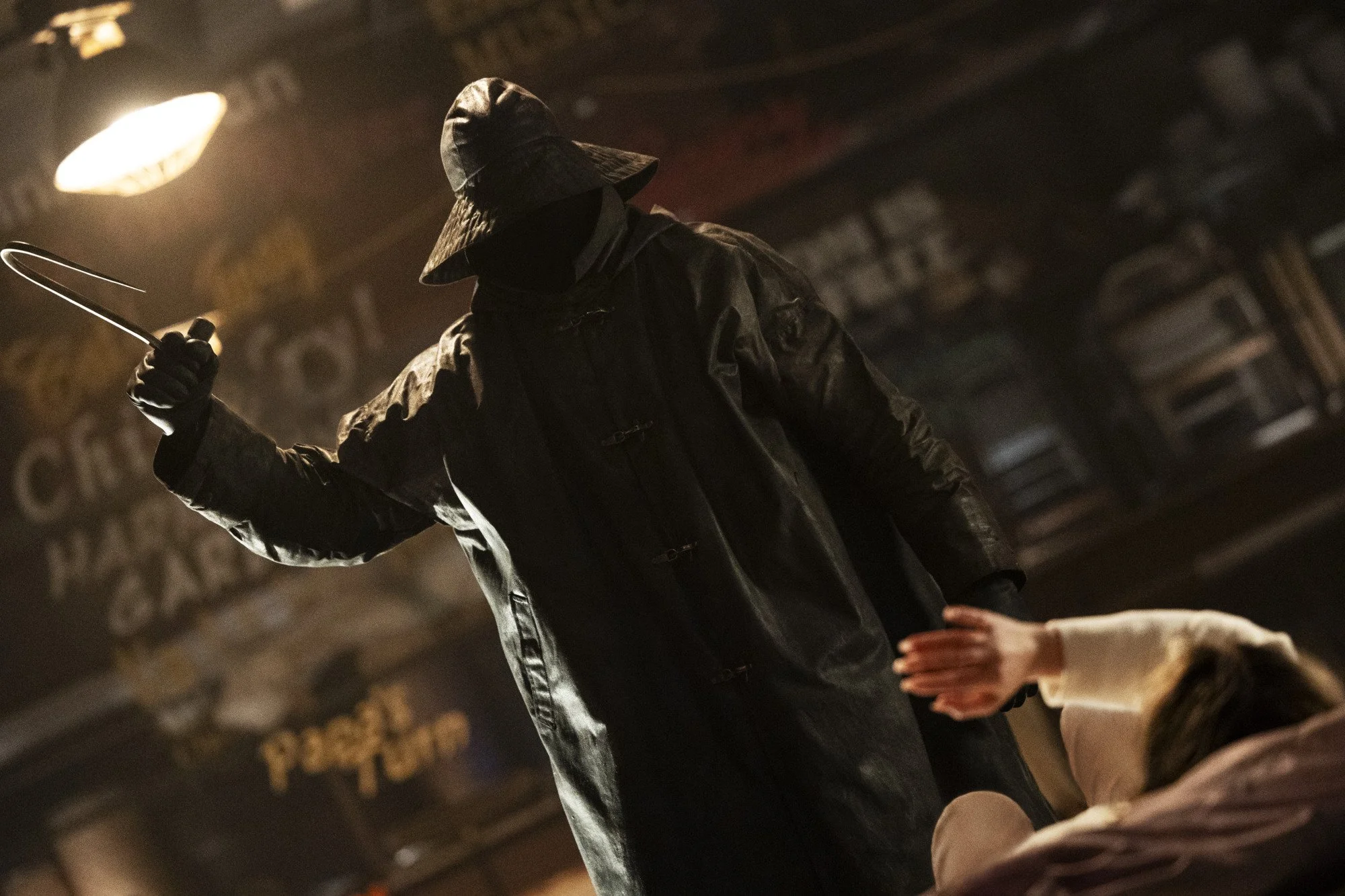 The original novel by Lois Duncan involved a cyclist. This reboot, like its predecessors, swaps the bicycle for a rain-slickered fisherman with a hook, which admittedly has a bit more theatrical menace—until someone says the word “slicker.” No one’s ever screamed, “Look out, it’s the slicker!” and gotten away with it.