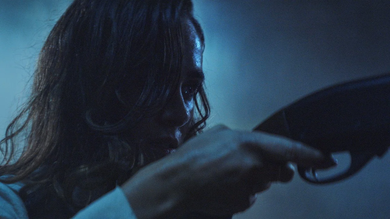 When the intruder finally shows up — Raúl Castillo as the shadowy figure known only as The Client — the film shifts gears. Or it attempts to. Castillo stays mostly in shadow, which isn’t surprising since every man who appears in this film is framed like a noir villain.
